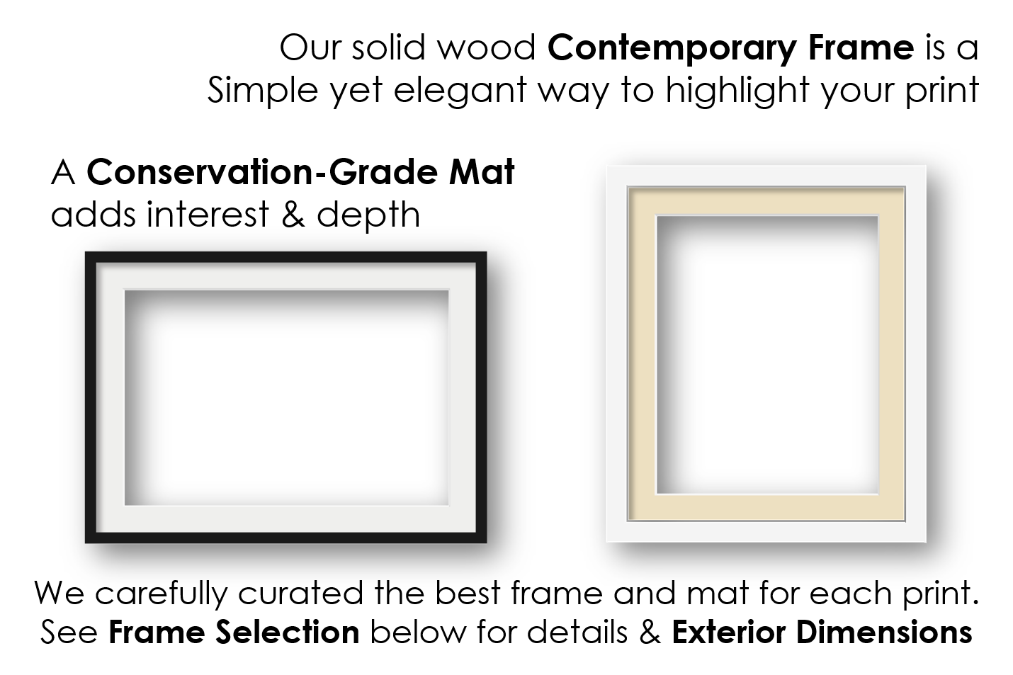 Our curators have selected the perfect frame for each of our prints. Details on the frame are included in the product description above.